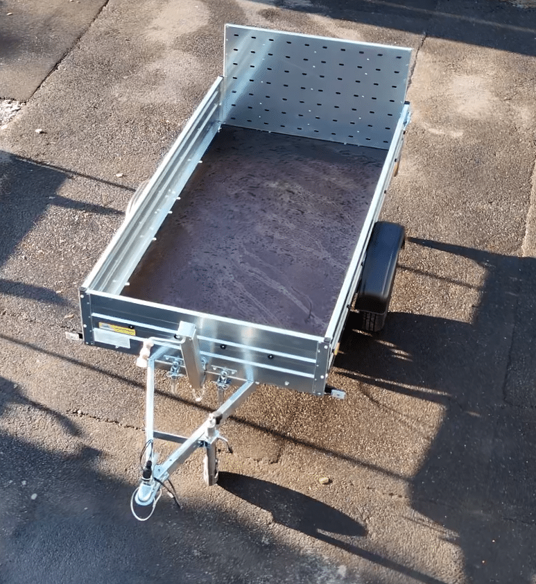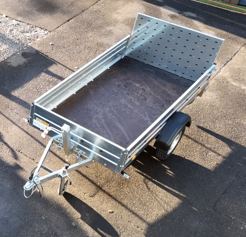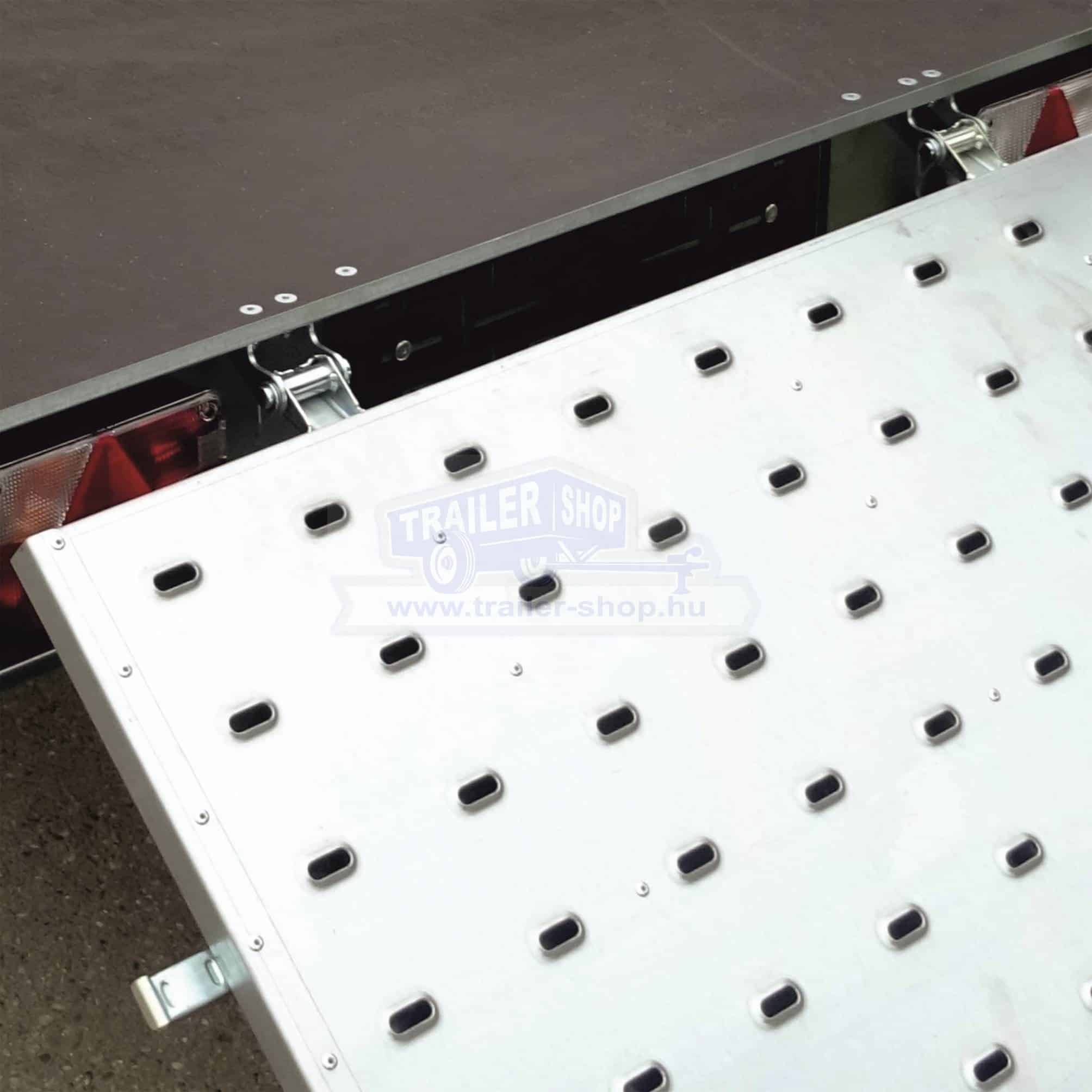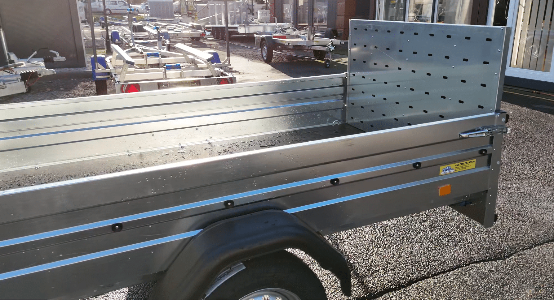 Az utánfutó alvázát megbízható Knott gyártmányú torziós tengely alkotja. A kerékméret 155/70 R13, amely megfelelő stabilitást és terhelhetőséget biztosít. A szállítófelület erős, vízálló és csúszásmentes rétegelt falemez, integrált rögzítő elemekkel így a rakomány mindig biztonságban van. A V-típusú vonórúd biztos vontatási stabilitást nyújt menet közben. Az oldalfalak teljes egészében horganyzott acélból készülnek, bordázott kialakításuknak köszönhetően merev fallal ellenáll a a deformálódásnak. Nyitható hátsó oldala van, ami pár perc alatt lehetővé teszi a be- és kirakodást! Az oldalfalak magassága 35 cm, de kérhető akár 70 cm teljes magasságban is.