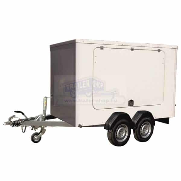 Az Alfa Modulo utánfutó egy rendkívül könnyű és sokoldalú koffer utánfutó, amely számos szállítási és üzleti célra egyaránt ideális választás. A felépítmény 10 mm vastag, fehér kompozit szendvics anyagból készült, amely nemcsak a tartósságot, hanem a hőszigetelést is biztosít, így mindenféle időjárási körülménynek ellenáll. A moduláris felépítmény lehetővé teszi a testreszabást, így az utánfutót bármikor át lehet alakítani, például büfékocsivá, rendezvényekhez szükséges mobil egységgé, vagy akár mobil irodává. A különböző elemek könnyen cserélhetők vagy bővíthetők, ami rendkívül rugalmas megoldást kínál a felhasználóknak.