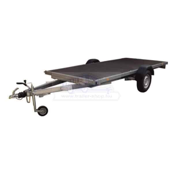 A síkplatós utánfutó ideális választás minden olyan feladathoz, ahol a rakomány mérete, alakja vagy hossza miatt zárt oldalfal nélküli szállítás szükséges. Nyitott kialakítása maximális rakodási szabadságot kínál – egyszerűen és gyorsan elhelyezhető rajta építőanyag, gép, raklapos áru vagy akár hosszú fém- és faelemek is. Erős, horganyzott acélszerkezete ellenáll az időjárásnak és a mechanikai igénybevételnek, így kültéri használatra is kiváló. A csúszásmentes padló biztos tapadást nyújt, míg a megerősített alváz gondoskodik a teherbírásról és stabilitásról. A síkplatós kivitel különösen népszerű a kivitelezők, kertépítők, gazdálkodók és magánszemélyek körében, akik megbízható, könnyen kezelhető és sokoldalúan használható utánfutót keresnek a mindennapi szállítási feladatokra.