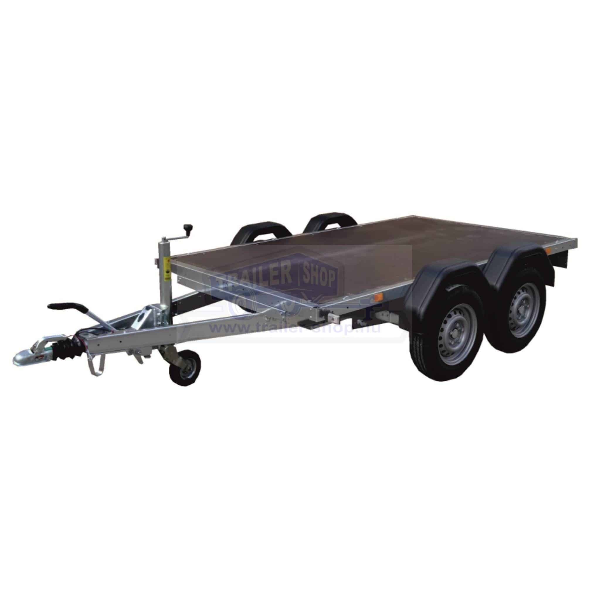A síkplatós utánfutó ideális választás minden olyan feladathoz, ahol a rakomány mérete, alakja vagy hossza miatt zárt oldalfal nélküli szállítás szükséges. Nyitott kialakítása maximális rakodási szabadságot kínál – egyszerűen és gyorsan elhelyezhető rajta építőanyag, gép, raklapos áru vagy akár hosszú fém- és faelemek is. Erős, horganyzott acélszerkezete ellenáll az időjárásnak és a mechanikai igénybevételnek, így kültéri használatra is kiváló. A csúszásmentes padló biztos tapadást nyújt, míg a megerősített alváz gondoskodik a teherbírásról és stabilitásról. A síkplatós kivitel különösen népszerű a kivitelezők, kertépítők, gazdálkodók és magánszemélyek körében, akik megbízható, könnyen kezelhető és sokoldalúan használható utánfutót keresnek a mindennapi szállítási feladatokra.